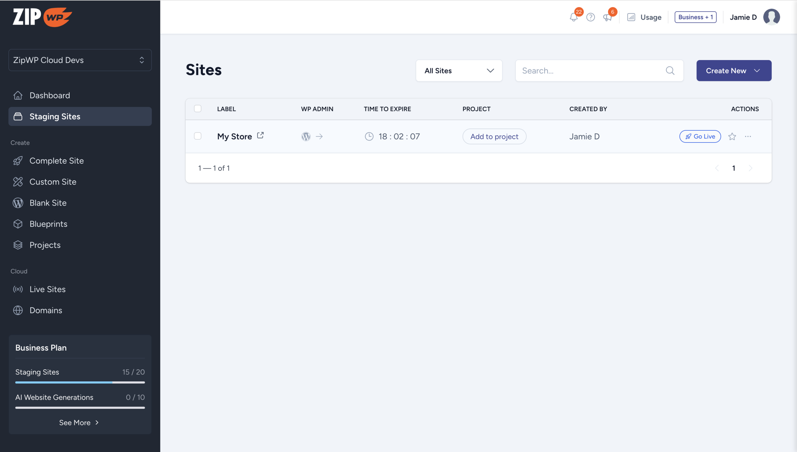 But once you’re ready to share your website with the world, you’ll need to move from staging → live hosting. That’s where ZipWP Cloud comes in.