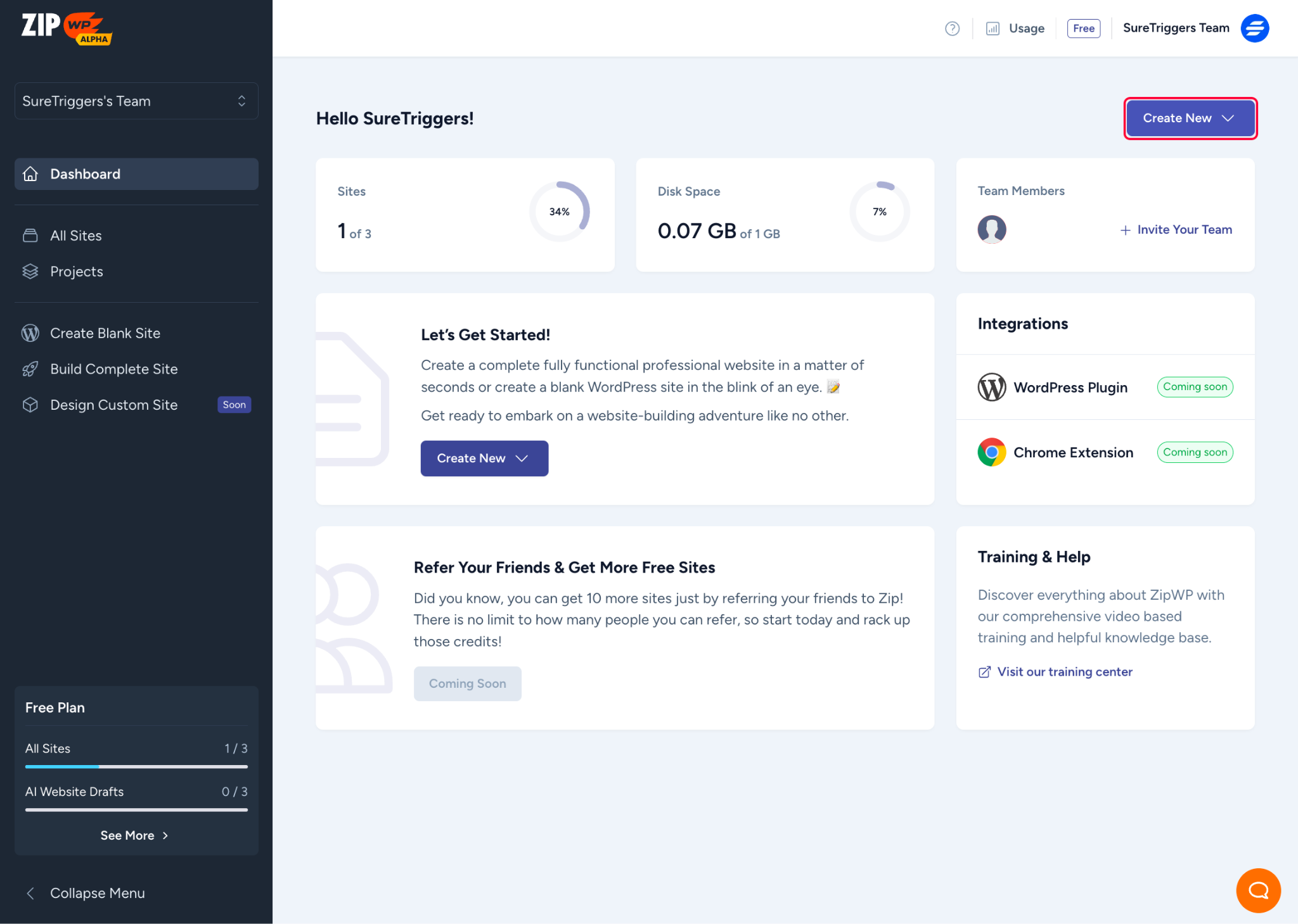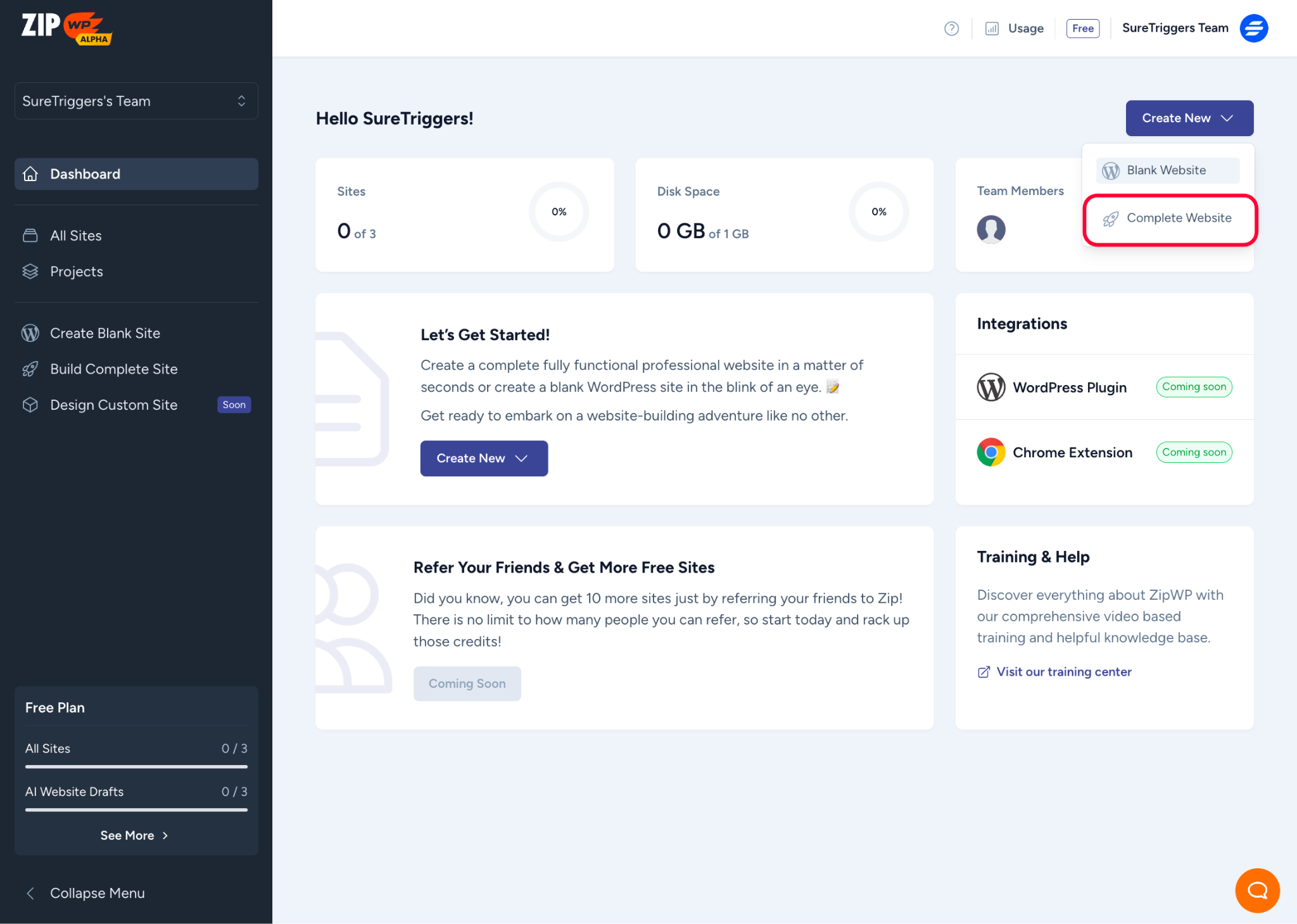 To create a complete website in your ZipWP account, simply follow these steps.