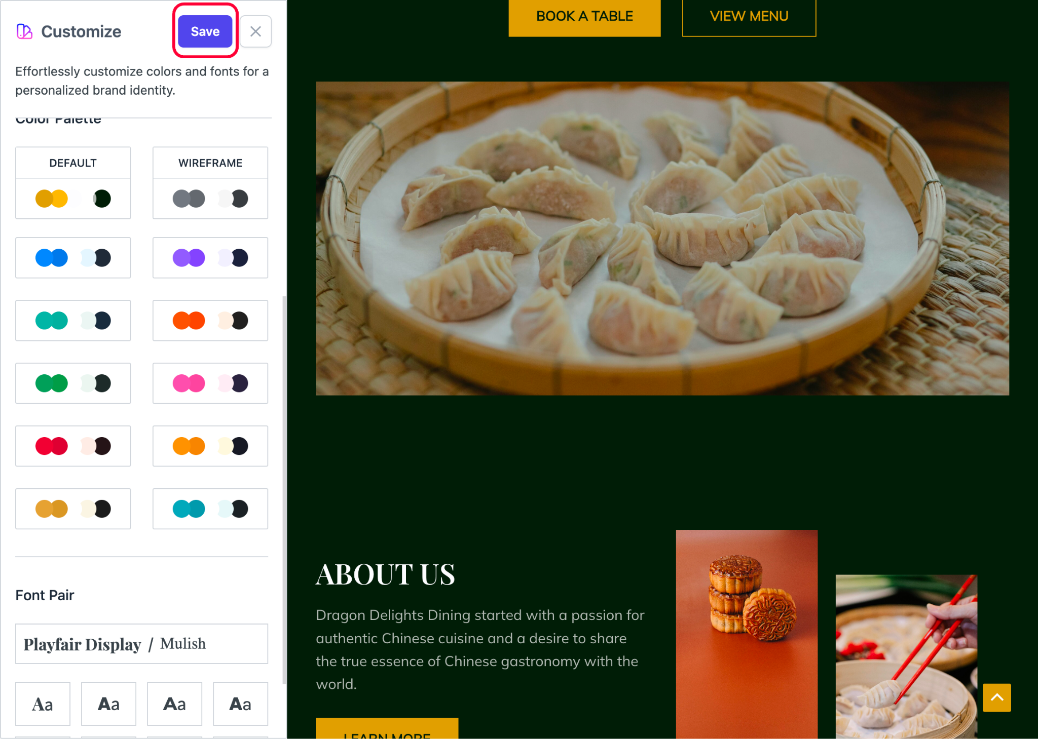 - Once you are satisfied with your customizations, click on the Save button.