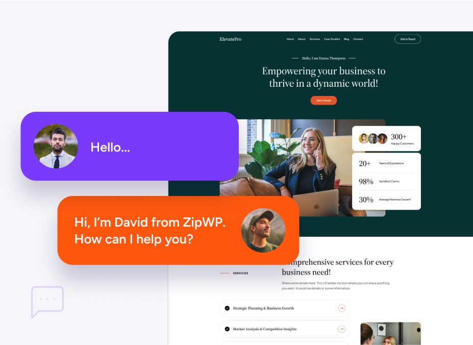 Transform your web development process with our AI Website Builder, designed to make creating stunning WordPress sites faster and easier than ever. Just describe your project briefly, and ZipWP will generate a complete website.