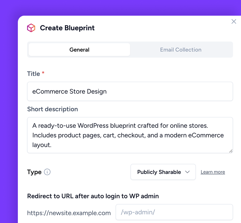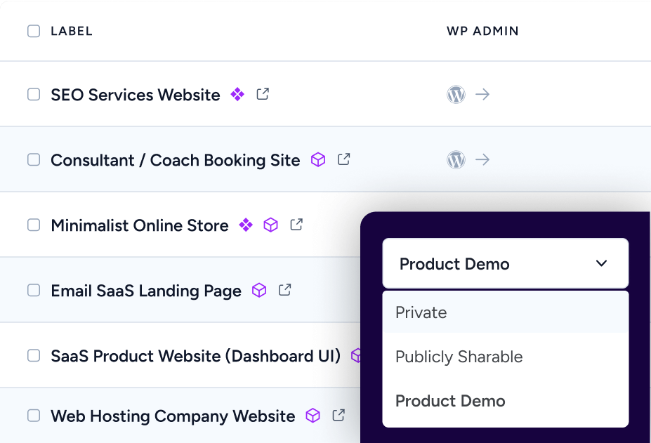 Save any WordPress site as a Blueprint and use it for future projects, share it with clients, or offer designs as a demo. No need to rebuild from scratch ever again.