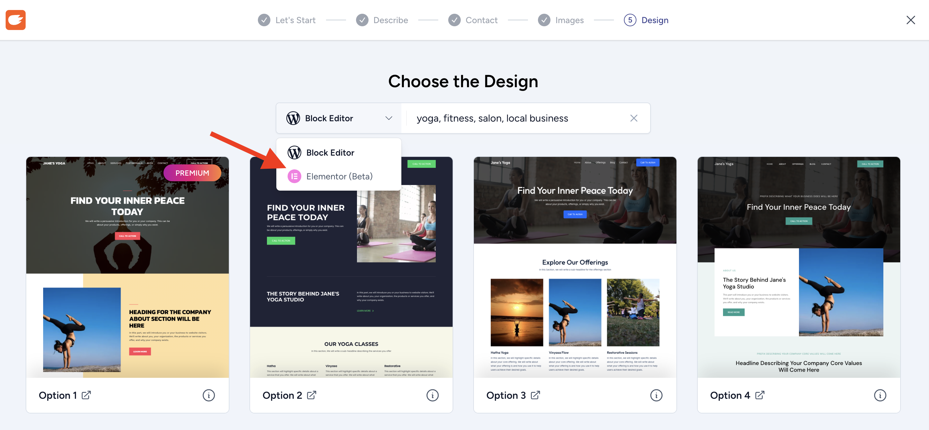 It’s super simple. Just choose Elementor on the “Select Design” screen when starting a new site. ZipWP will handle the rest.