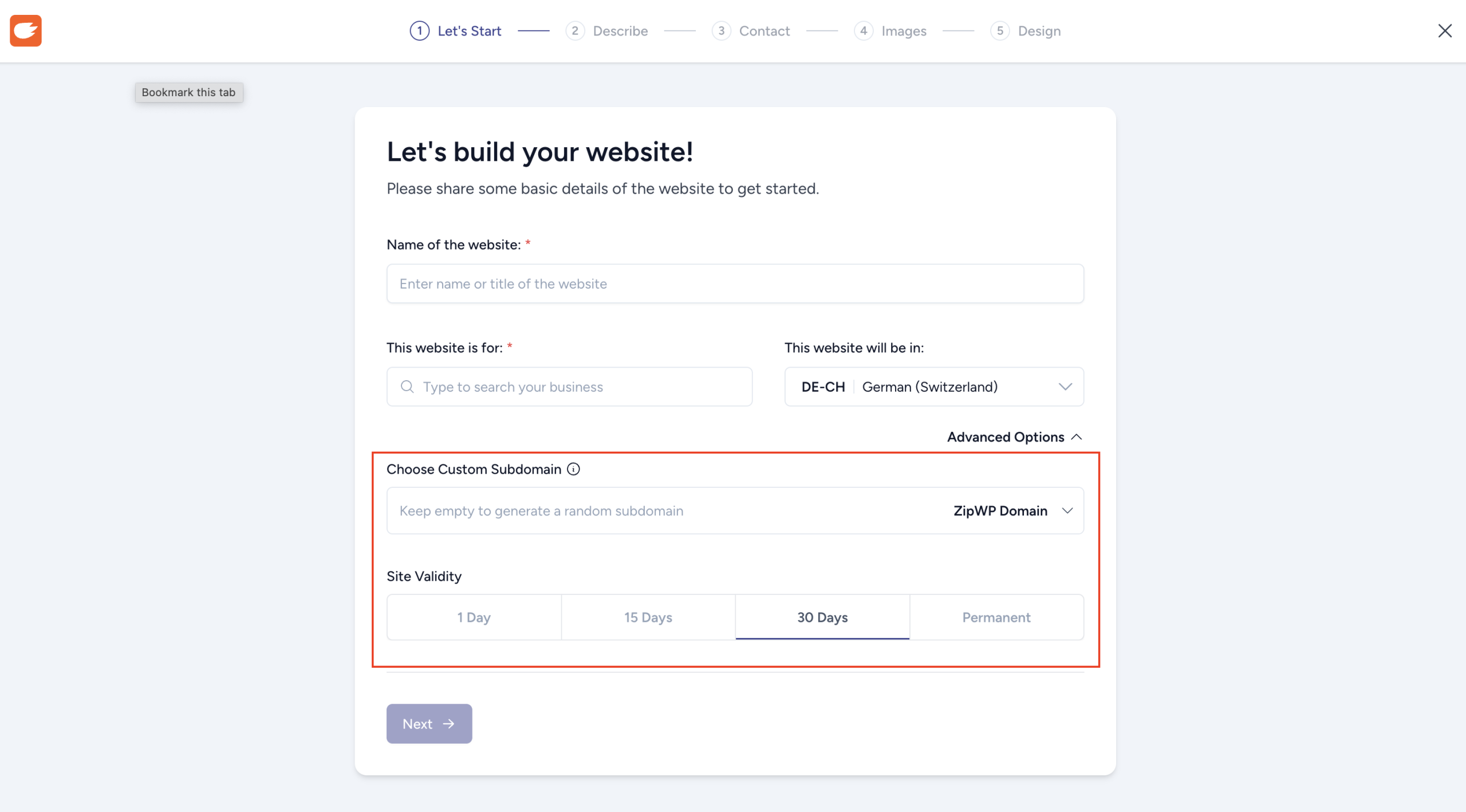 First, while creating an AI-powered site, you can now set a custom subdomain and define the site validity period right from the start.