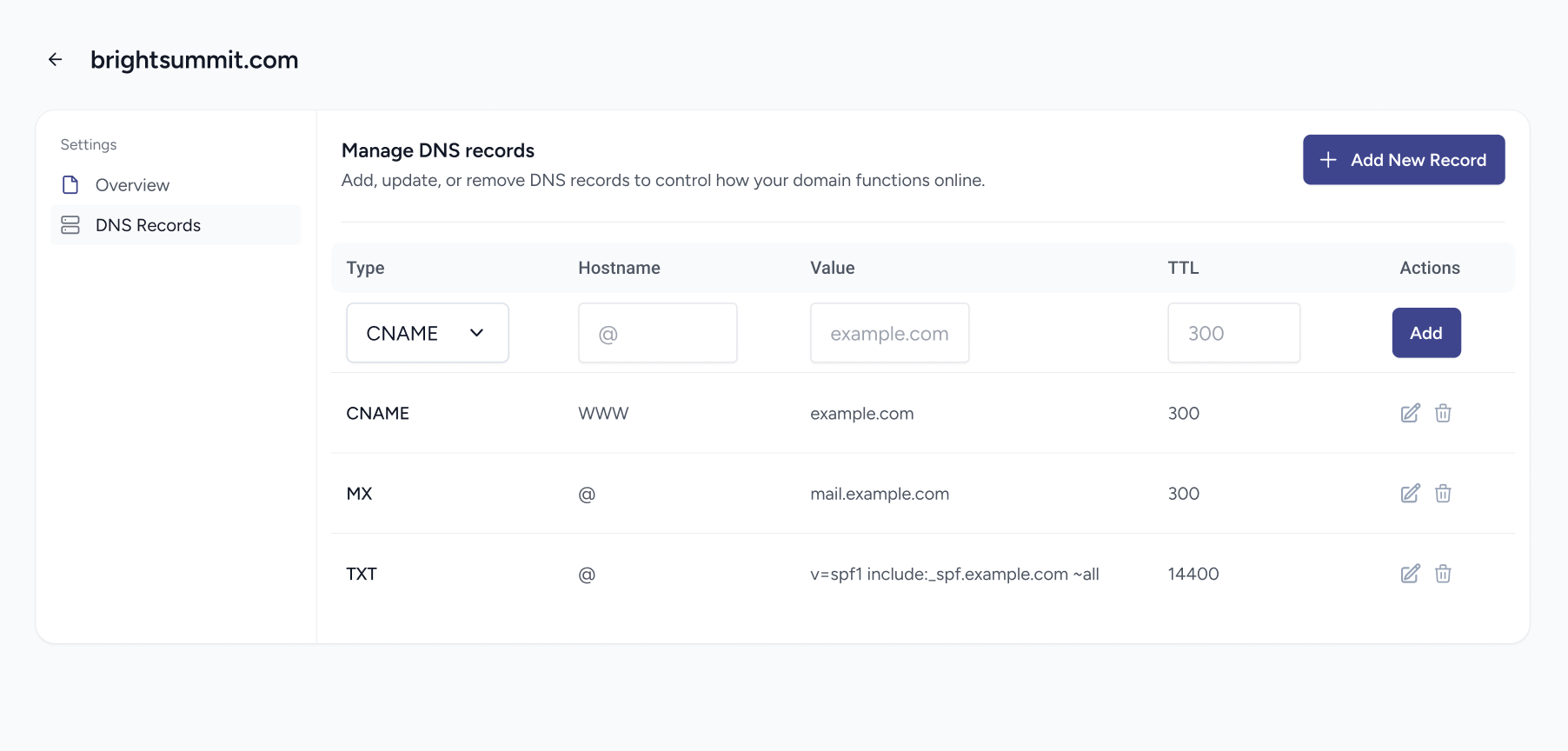 ZipWP now supports complete DNS management for custom domains connected to ZipWP Cloud sites. That means you can: